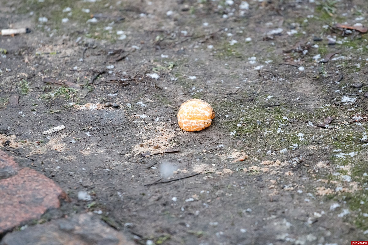 На улицах областного центра можно заметить редких прохожих, а также остатки использованной пиротехники. В этом году из-за распространения коронавируса официальный городской фейерверк был отменен, поэтому многочисленные салюты в новогоднюю ночь псковичи традиционно запускали самостоятельно.