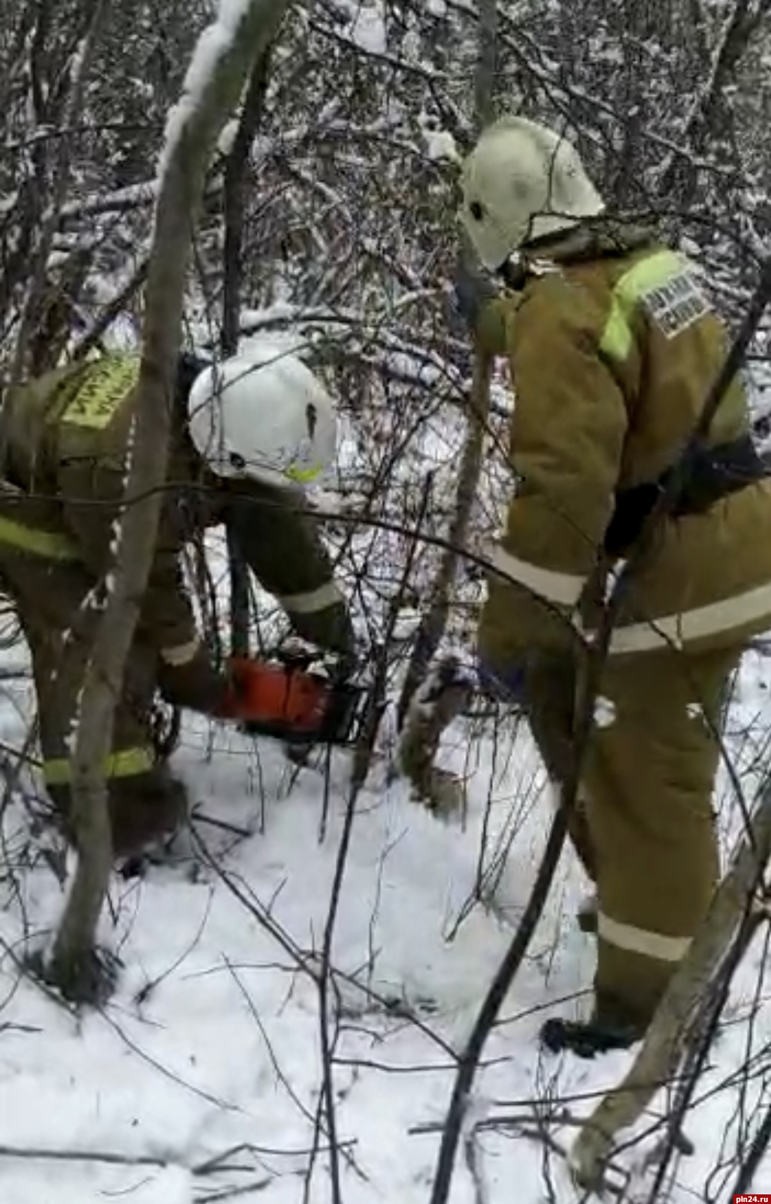 Аэромобильная группировка Главного управления МЧС России по Псковской области оказывает адресную помощь по распиловке и уборке поваленных деревьев.