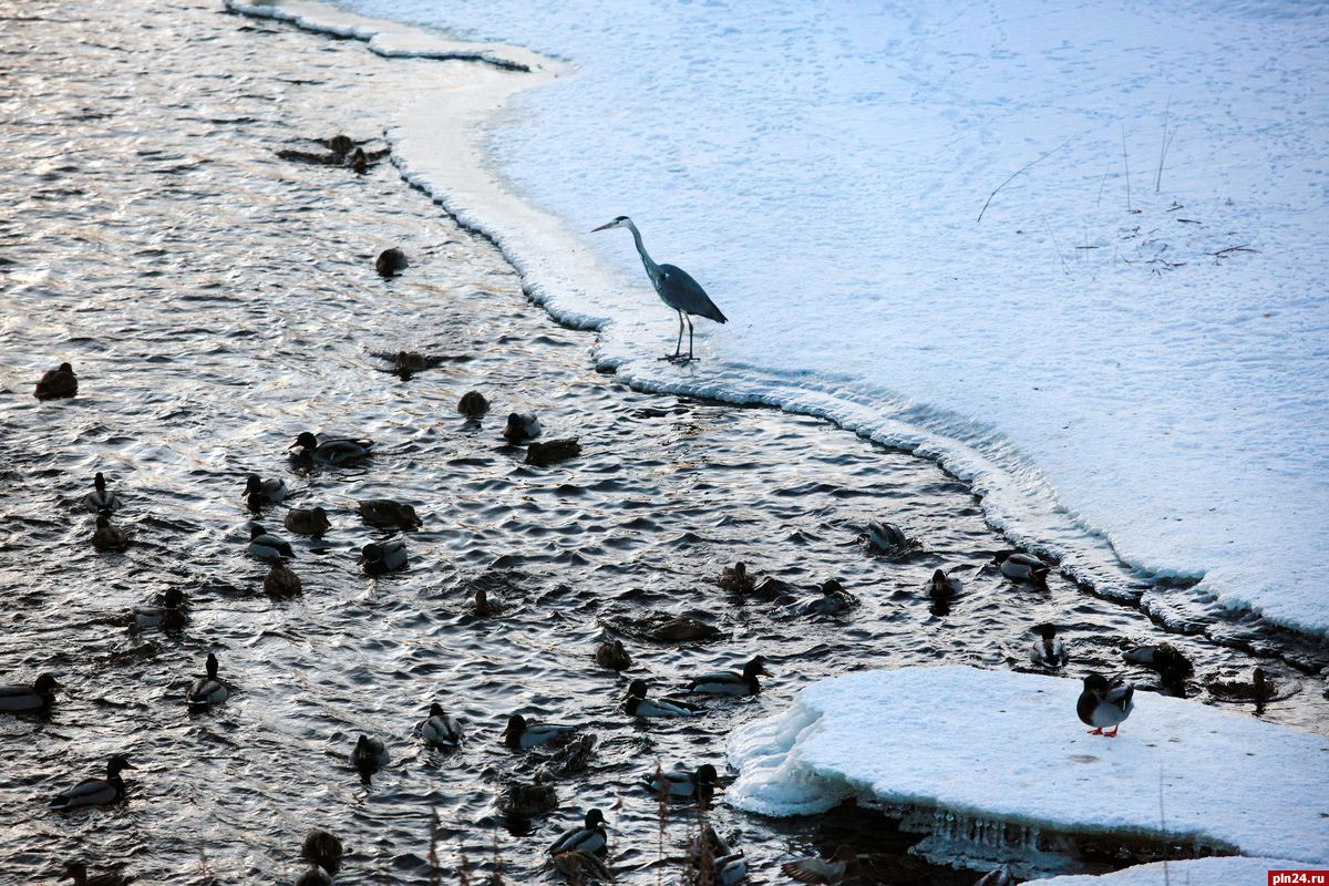 Оставшаяся на зимовку в Пскове цапля удивила горожан. Местной жительнице удалось сфотографировать птицу на берегу реки в Финском парке. Снимки она разместила в группе «Жесть по-псковски» в соцсети «ВКонтакте».