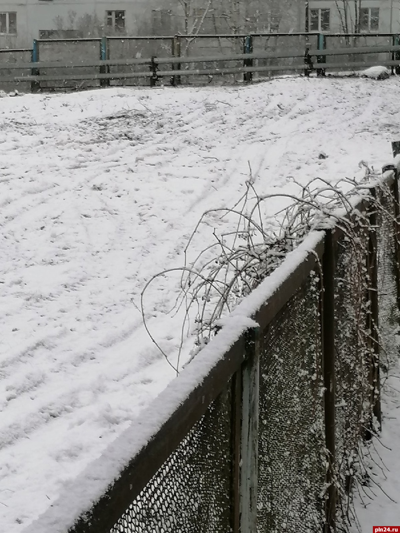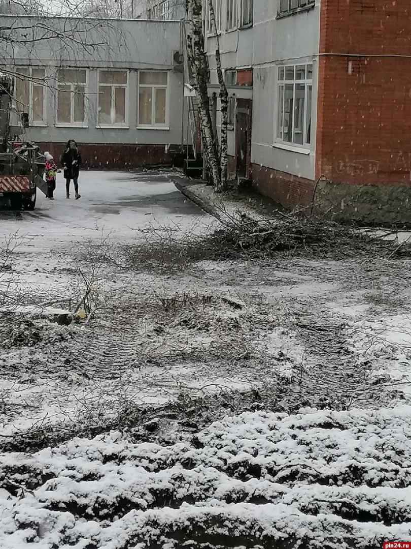 Псковичка сообщила, что на территории детского сада, а также снаружи вырезали много деревьев, в том числе и тонкие здоровые березы, которые вряд ли являются аварийными. Кроме того, вырезаны кусты боярышника, которые росли вдоль забора.