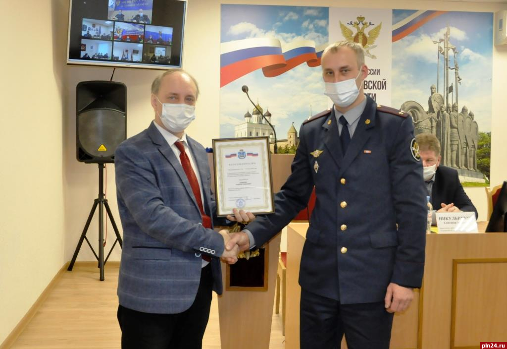 В завершении своего выступления, Дмитрий Шахов поблагодарил руководство и сотрудников УФСИН России по Псковской области за добросовестное несение службы в условиях сложной санитарно-эпидемиологической обстановки, недопущения массовых вспышек заболеваний среди осужденных и граждан, находящихся в СИЗО, а также вручил благодарность уполномоченного по правам человека в Псковской области за личный вклад в содействие и обеспечения прав граждан Андрею Томилину - начальнику отдела кадров УФСИН, ранее занимавшего должность помощника начальника управления по соблюдению прав человека в УИС.