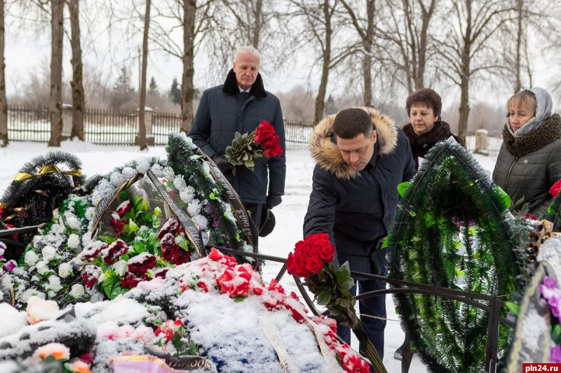 Михаил Ведерников, председатель Псковского областного Собрания депутатов Александр Котов и руководитель района Ольга Иванова посетили Ивановское кладбище.