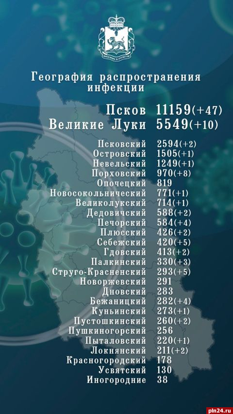 Согласно представленной Михаилом Ведерниковым статистике, всего в Псковской области с начала пандемии проведено 262 107 исследований на COVID-19, из них 815 за минувшие сутки.