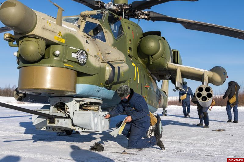 В Псковской области экипажи бригады армейской авиации Ленинградской армии ВВС и ПВО Западного военного округа провели летное тактическое с применением авиационных средств поражения. Об этом сообщает сайт министерства обороны РФ со ссылкой на пресс-службу Западного военного округа.