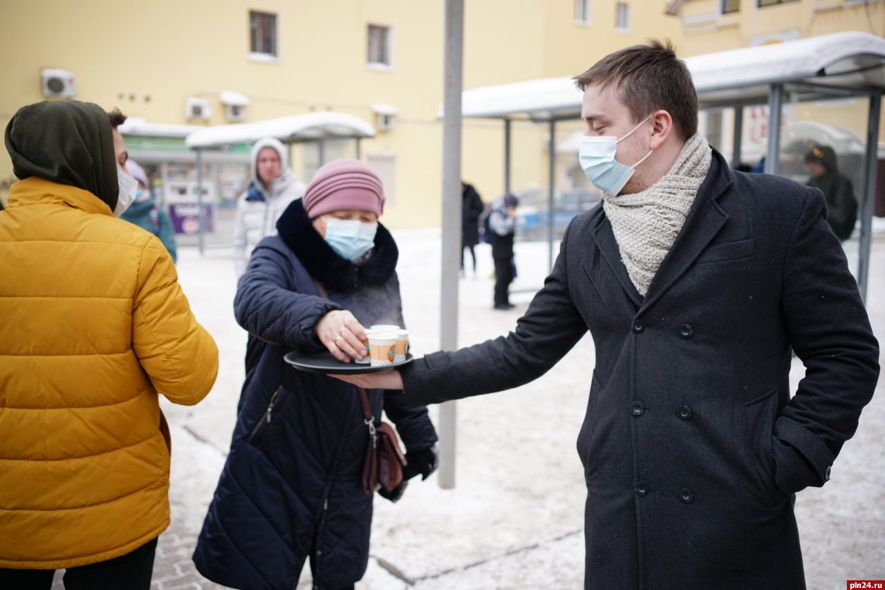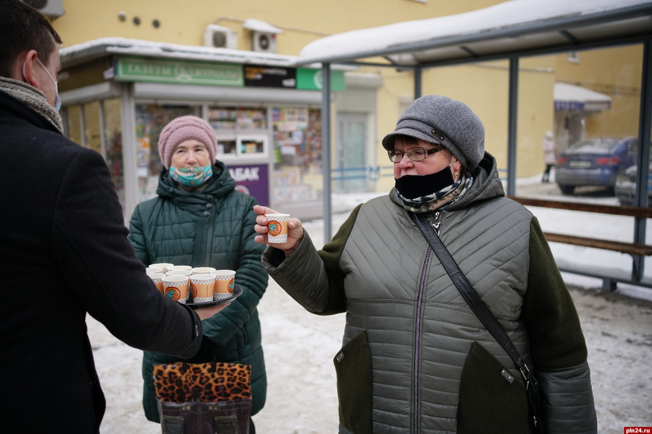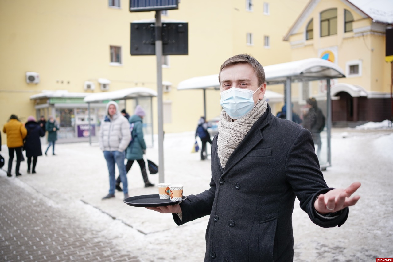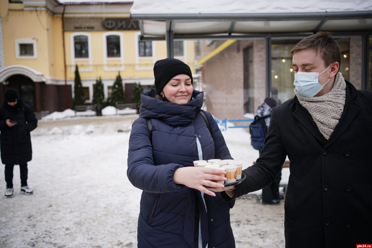 Команда кафе «Вкус и Цвет» решила поддержать благотворительную акцию - День спонтанной доброты, и сегодня, 17 февраля, угощала псковичей горячим кофе прямо на улице. «Конечно, это немного, но мы очень рады, что смогли сделать мир вокруг чуточку теплее и добрее», - рассказали Псковской Ленте Новостей организаторы акции.