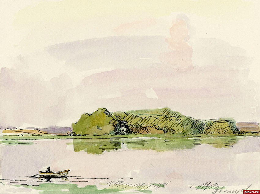 Василий Звонцов. Тихо на озере Петровском. Беседка-грот (1975—1976). Из собрания музея-заповедника «Михайловское».