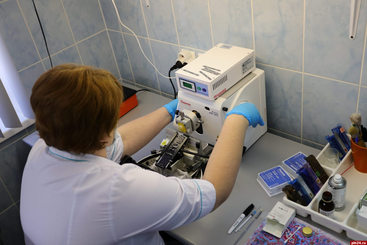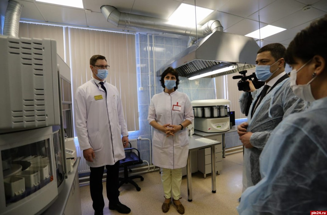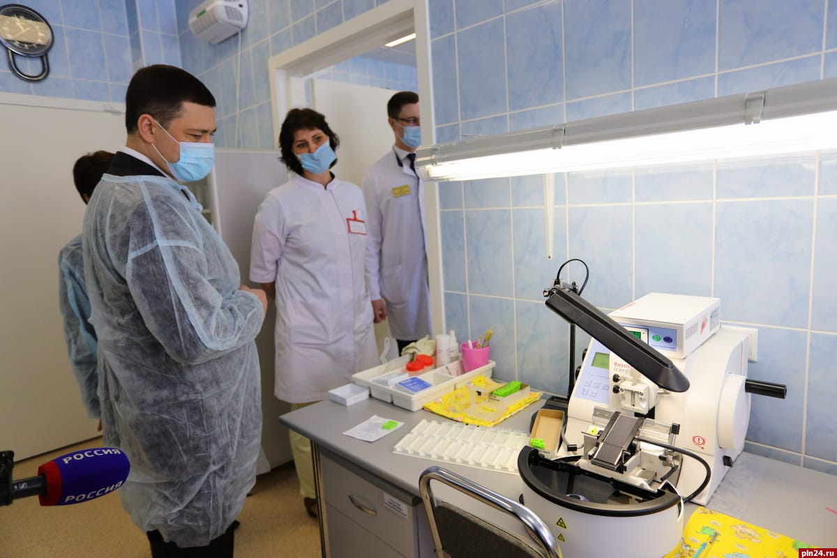 Далее губернатор ознакомился с работой морфологической лаборатории и используемым оборудованием для диагностики.