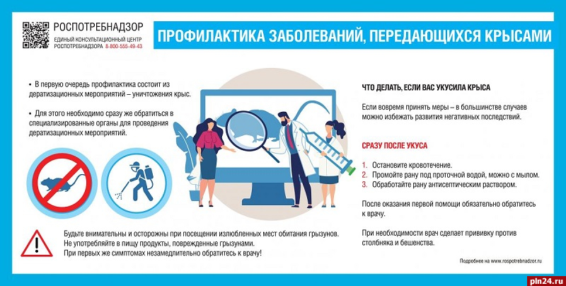После оказания первой помощи обязательно обратитесь за медицинской помощью. При необходимости врач сделает прививку против столбняка и бешенства. Будьте внимательны и осторожны при посещении излюбленных мест обитания грызунов. Не употребляйте в пищу продукты, поврежденные грызунами. При первых же симптомах незамедлительно обратитесь к врачу, дали рекомендации псковичам.