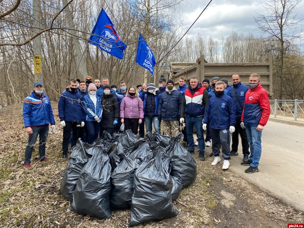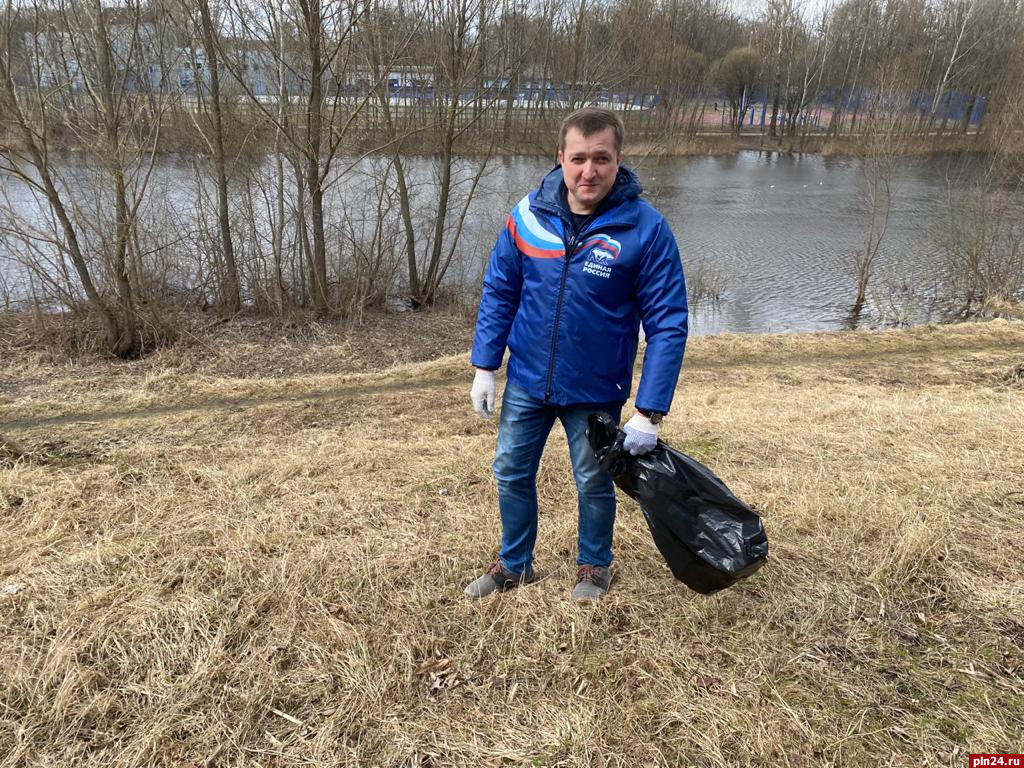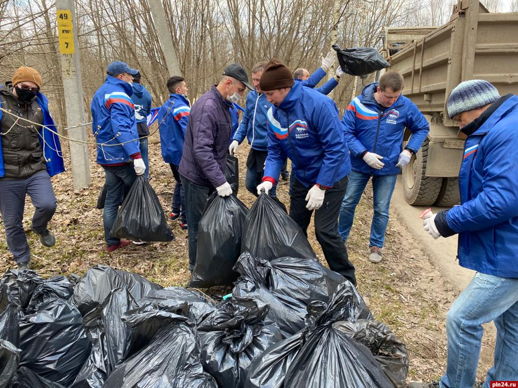 В уборке территории участвовали депутаты Великолукской городской думы, члены и сторонники партии, спортсмены клуба «Отечество».