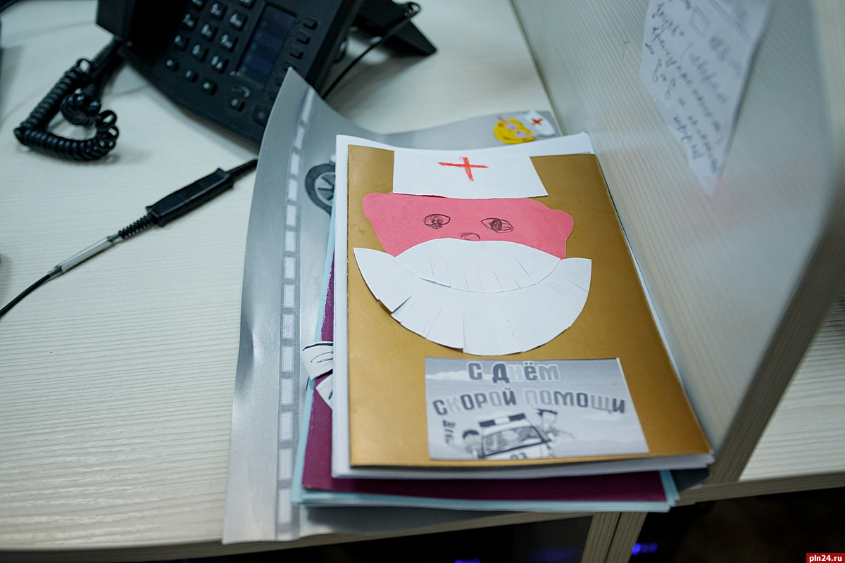 В подарок сотрудники станции получили открытки, которые для медиков нарисовали воспитанники псковского детского сада №47.