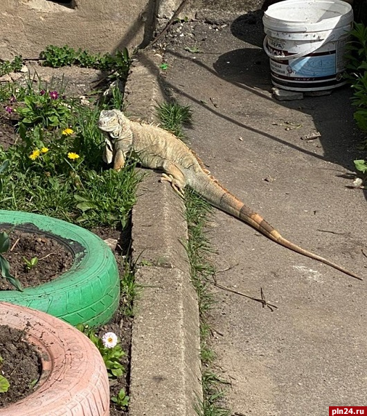 Экзотическая рептилия бегала по улице Дружбы в Великих Луках сегодня, 17 мая. Об этом сообщила в соцсетях местная жительница.