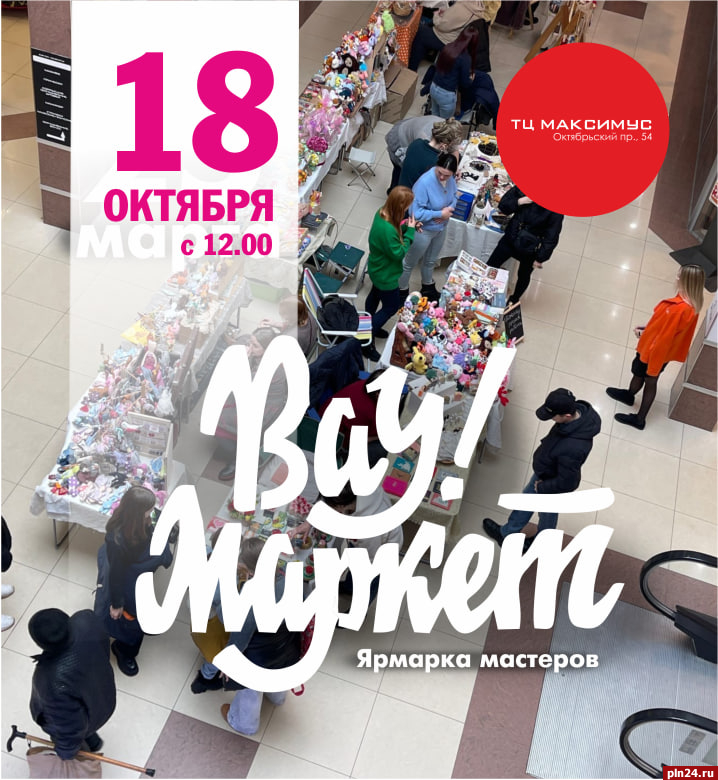 Ярмарка мастеров пройдёт в Пскове в торговом центре «Максимус» завтра, 18 октября. На ярмарке можно будет приобрести уникальные товары ручной работы, сообщили Псковской Ленте Новостей организаторы.