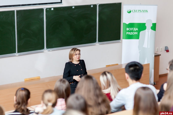 В Псковском государственном университете прошла специальная лекция от Сбербанка, приуроченная ко Дню российского студенчества.